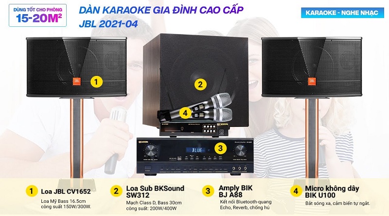 Dàn karaoke gia đình BIK 20 kết hợp từ nhiều thương hiệu uy tín như BIK, BKsound đáp ứng nhu cầu nghe nhạc, hát karaoke chất lượng trong không gian 20-30 m2. – Loa karaoke BIK BJ-S968 (2 chiếc) 5 loa, 2 đường tiếng, công suất 300W/650W. – Power Amplifier BKSound DKA 8500 (1 chiếc) […]