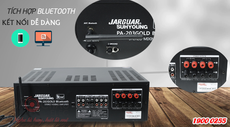 Amply karaoke Jarguar chính hãng được trang bị đầy đủ cổng kết nối thông dụng nên quý khách hàng dễ dàng phối ghép với các dòng loa karaoke, loa sub, micro,… để tạo nên dàn karaoke hoàn chỉnh.